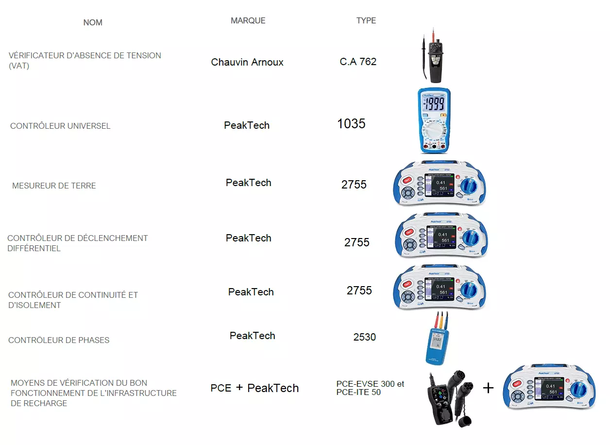 – Moyens de vérification du bon fonctionnement de l’infrastructure de recharge : PCE-EVSE 300 et PeakTech 2755
